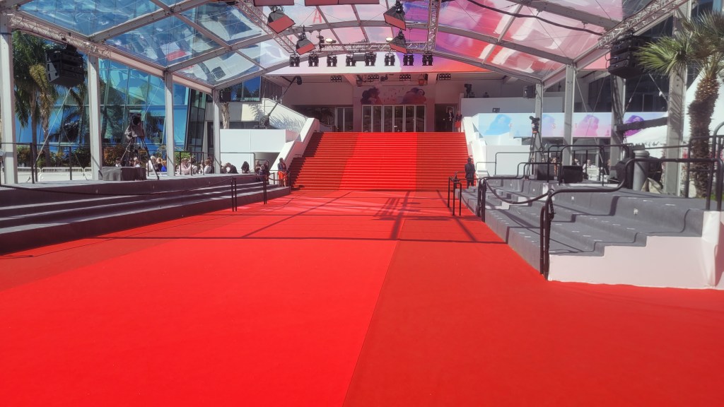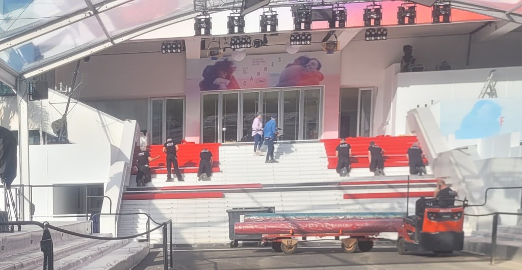 Je suis restée plantée là à découvrir l’installation du tapis rouge sur les fameuses marches ou les stars défilent. Ca tombe bien, j’aime beaucoup le rouge.