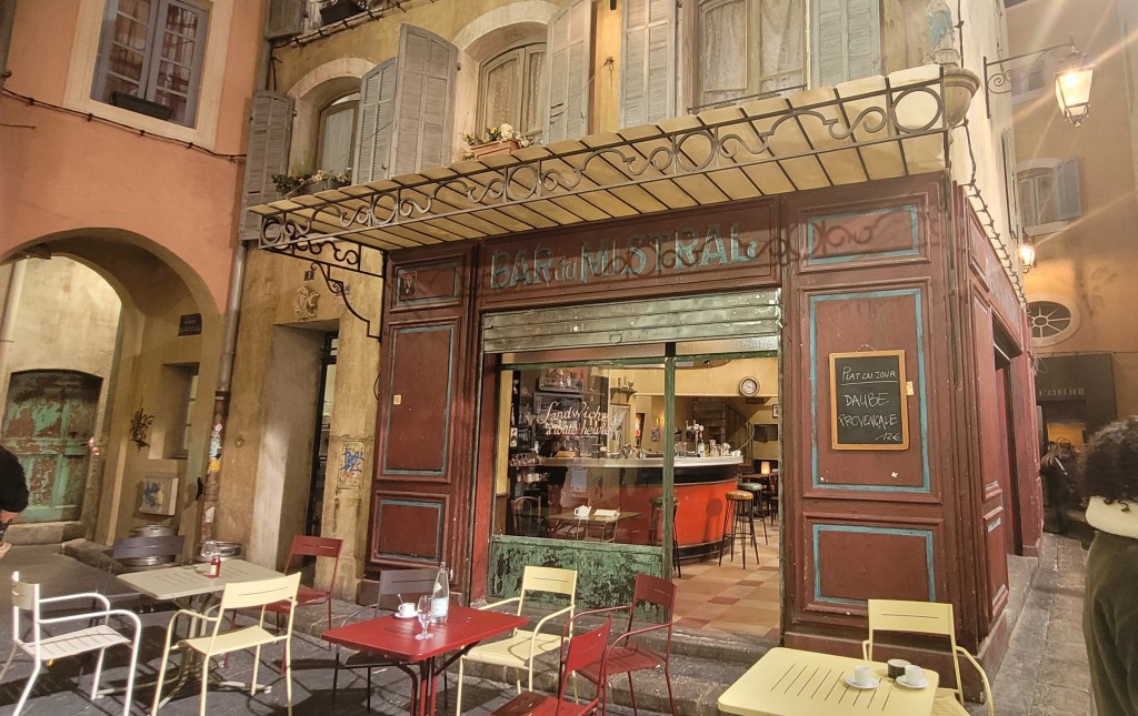 Le studio 1000, c est le plus grand du pôle média, c’est la place du Mistral , là où se trouve le célèbre bar « le mistral » et l’hôtel, « le Zephir » anciennement » le Celest « . Sur cette place se trouve aussi, le cabinet du medecin, un appartement, le bar « le Marci », les cuisines …avec tous les objets jusqu au moindre détail, des facades d immeuble , des portes ouvrant sur …. rien alors qu à l écran, elles debouchent sur des appartements, et puis les escalier qui donnent sur un cul-de-sac. Ca fait bizare. C est juste bluffant, incroyable. On se croirait dans un vrai quartier de Marseille. D ailleurs tout est inspiré du vieux panier. Sutout le bar du mistral ressemblant étonnement au bar « les 13 coins ».