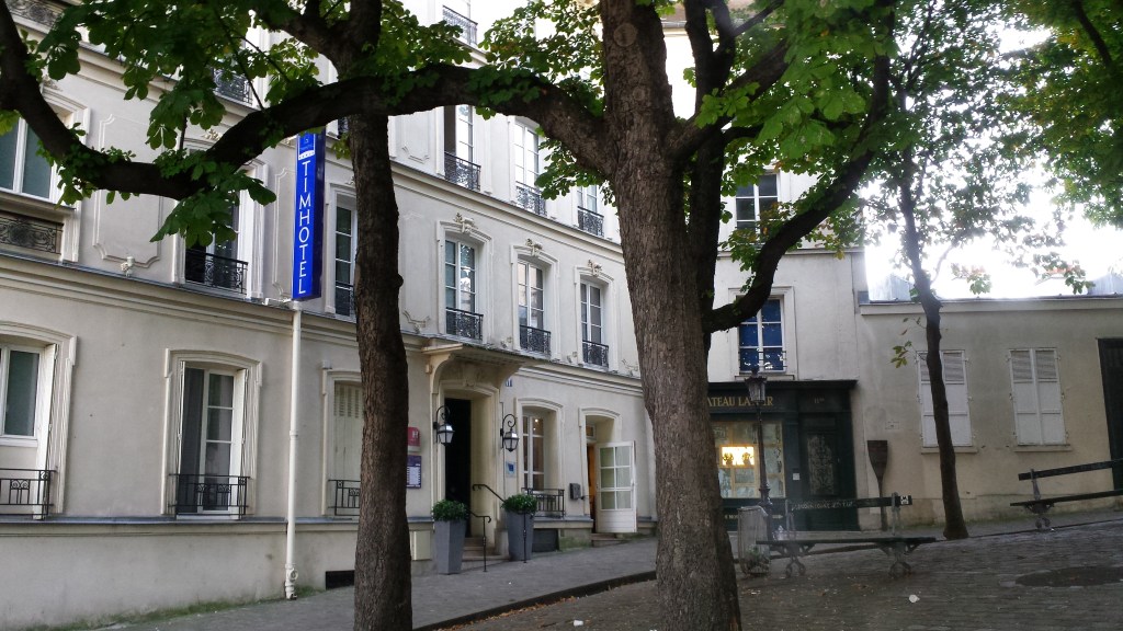 Face au rocher, un grand portail et derrière s’y trouve l’Hôtel Particulier de Montmartre un véritable havre de paix, un paradis caché qui fut un temps en possession de la famille HERMES. Une fois franchi ce portail, on entre une fois de plus dans un monde à part. Bon, là j’avoue, pour l’hôtel, je n’ai pas pu y entrer. Je ne fais pas partie de la famille HERMES . Et oui il ne faut pas trop en demander. Hein!!! En fait, j’ai juste un parfum Hermes.