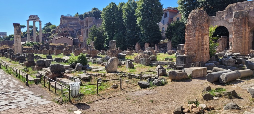Le Colisée, amphithéâtre le plus célèbre de l’antiquité est le symbole de la ville durant l’époque de l’Empire romain. Autrefois, il servait de lieu de divertissement au peuple. Nous l’avons visité de haut en bas. Des escaliers et encore des escaliers…. Mais juste avant, nous nous trouvions dans les Forums Romains et les collines du Mont Palatin. Ce site archéologique le plus important de Rome. En traversant ses ruines, on y découvre des arcs, des colonnes, des sculptures…