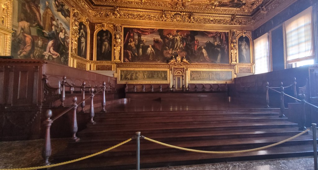 Le Palais des Doges , un exemple d’architecture vénitienne simplement magnifiiiiiiique. Nous ne savons plus où donner de la tête. Le palais a également abrité une prison. Nous la visitons. Oh lala , c’est….heu… flippant quand même.