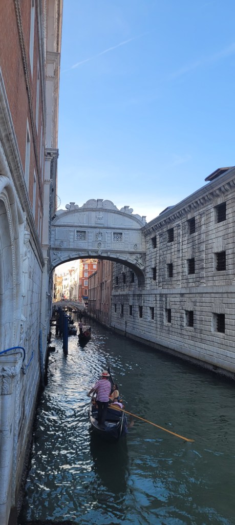Le fameux pont des Soupirs se trouve juste derrière la Basilique. Au-delà de la légende des amoureux passant avec la gondole sous le pont en trouvant l’amour éternel, ce pont était le passage des prisonniers qui le traversaient avant d’être enfermé en prison…Bon c’est sûr, la légende des amoureux c’est beaucoup plus romantique.