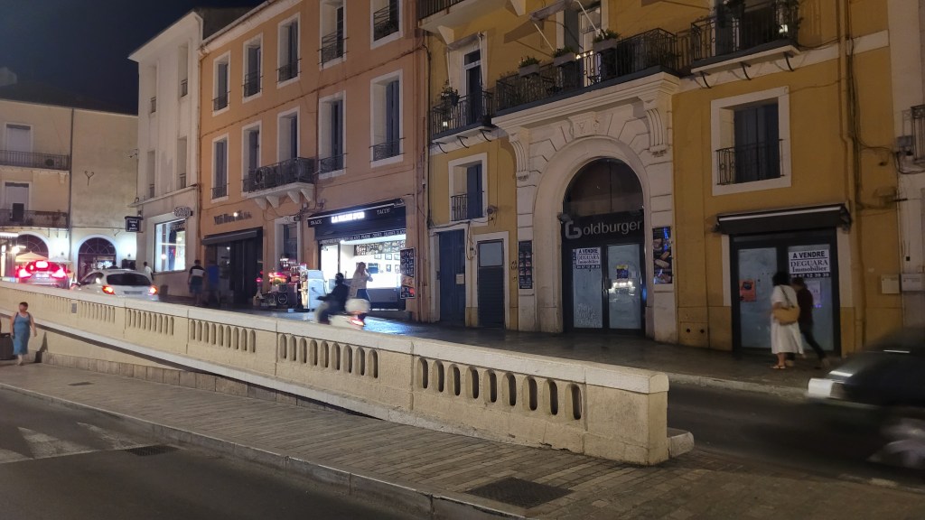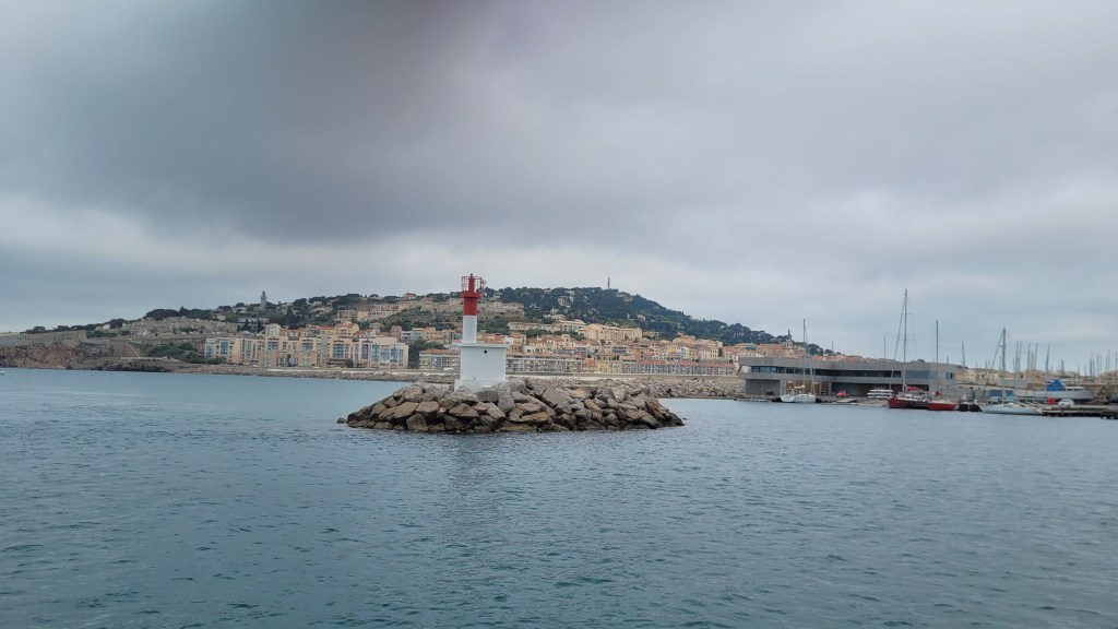 Lors d’une promenade, le guide nous a expliqué que le nom de Sète a été assimilé au latin cetus ( baleine), ce qui explique la présence de l’animal un peu partout dans la ville. D’ailleurs vu de loin, le Mont St Clair a la forme d’une baleine.